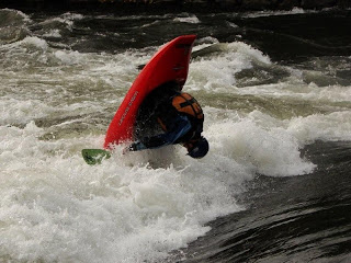 In these cold days sun showed up just once and made weather warmer little bit. We took this opportunity and traveled to Graz. It was closest play spot where water level was ok. Saturday morning we, me, Peter and Vlado packed our kayaks to car and drove 250km to Austrian most cultural city Graz. It took 3hours to get there and half hour to find a park palace. The hole T3 is situated in the middle of city under the bridge. We had many spectators and they were looking on us and thinking what a crazy people are in the water when out is 8 degrees. But we were so happy that we can be in water again. We had awesome 2hours session. Hole was a bit flashy but every move was possible to do there. After first 30min when we felt like beginners we found a right energy and improved our rides. In every ride we got better and better. In the end of our training Peter could make everything there on both sides, Vlado learned a new trick- back loop and I scored some nice fenixmonkey's and ‘almost trickywoo’s. After this we went to buy the best kebab in Graz and tired but satisfied traveled back home. I hope that weather surprise us one more again and we will have a chance to make the trip like this again.